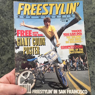 Also in 1984, the first issue of FREESTYLIN' magazine came out, edited by one Andy Jenkins, BMX racer, art student, and skater. Andy was a fan of Thrasher, and a talented, emerging graphic artist, and helped bring the punk rock and street inspired vibe to BMX freestyle. That was something Dave Vanderspek and the Curb Dogs were already doing. A few issues into the magazine, in the April 1986 issue, came the first "street" riding article. The tricks were pretty simple, though Rick Allison's 5 foot backwards drop-in was insane at the time. All of us freestylers around the world, who devoured every issue of FREESTYLIN' (you can read it here), started looking at the urban landscape in a different way.